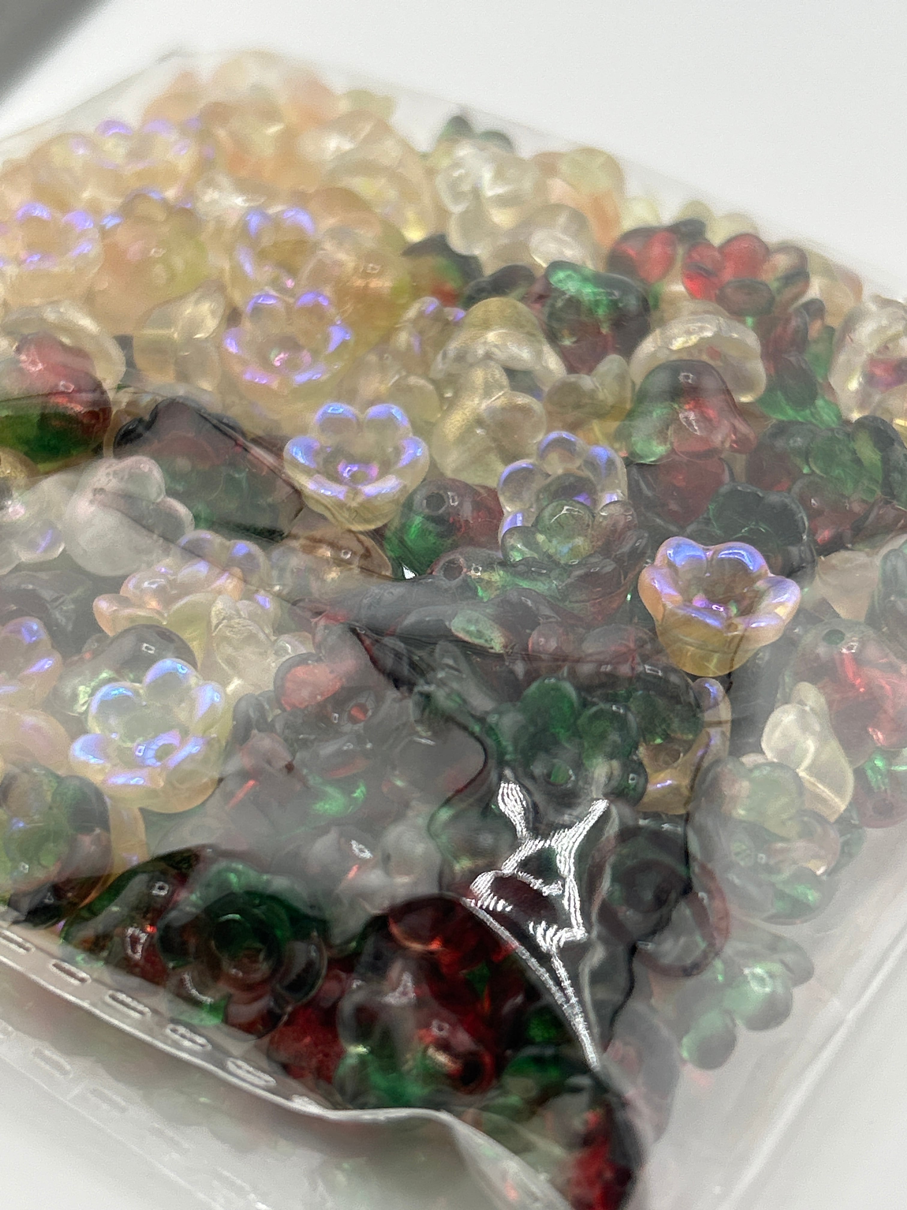 花モチーフのガラスビーズをまとめた大容量詰め合わせセットです。