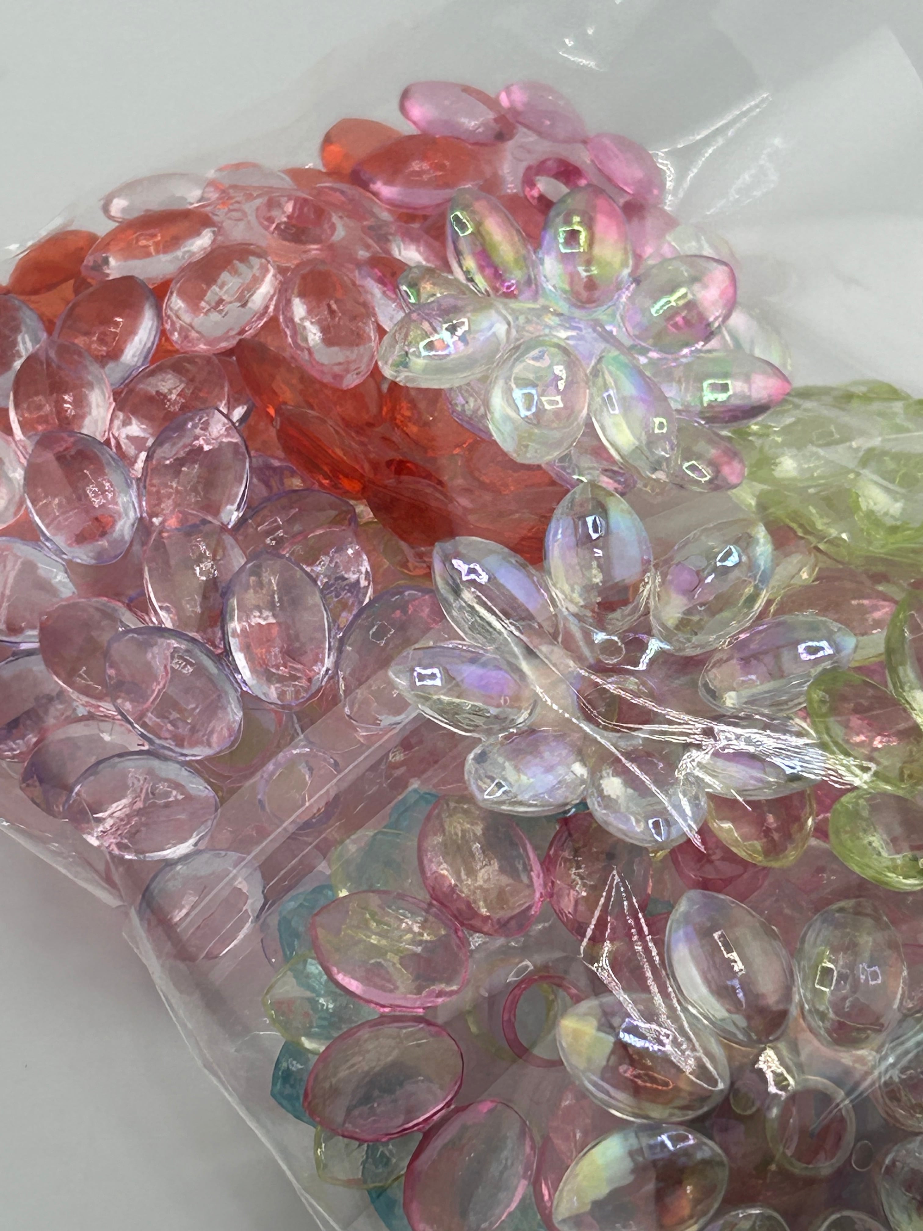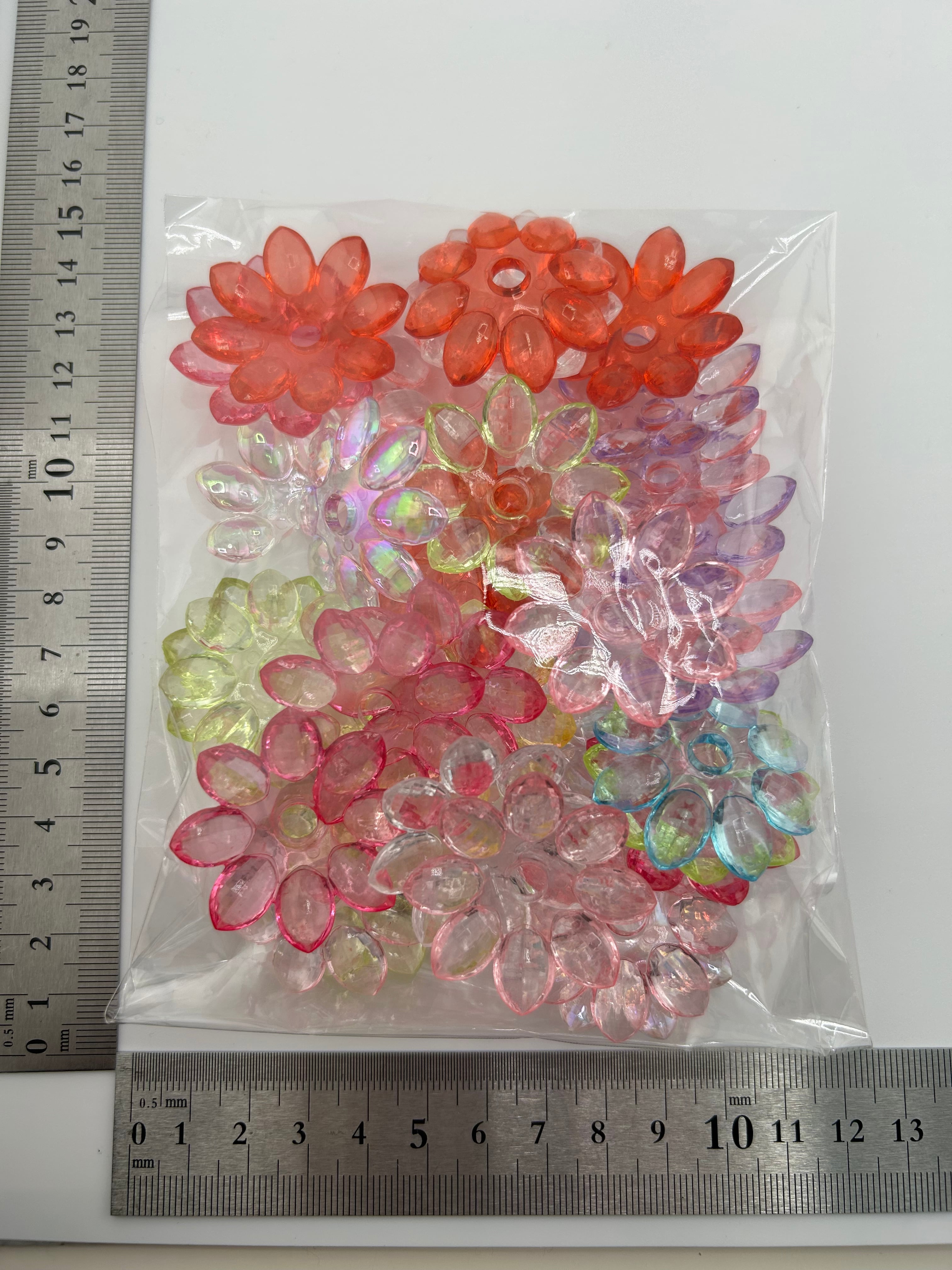 【M1-4】フラワー型 クリアビーズ詰め合わせ / オーロラ・カラーミックス / リユース