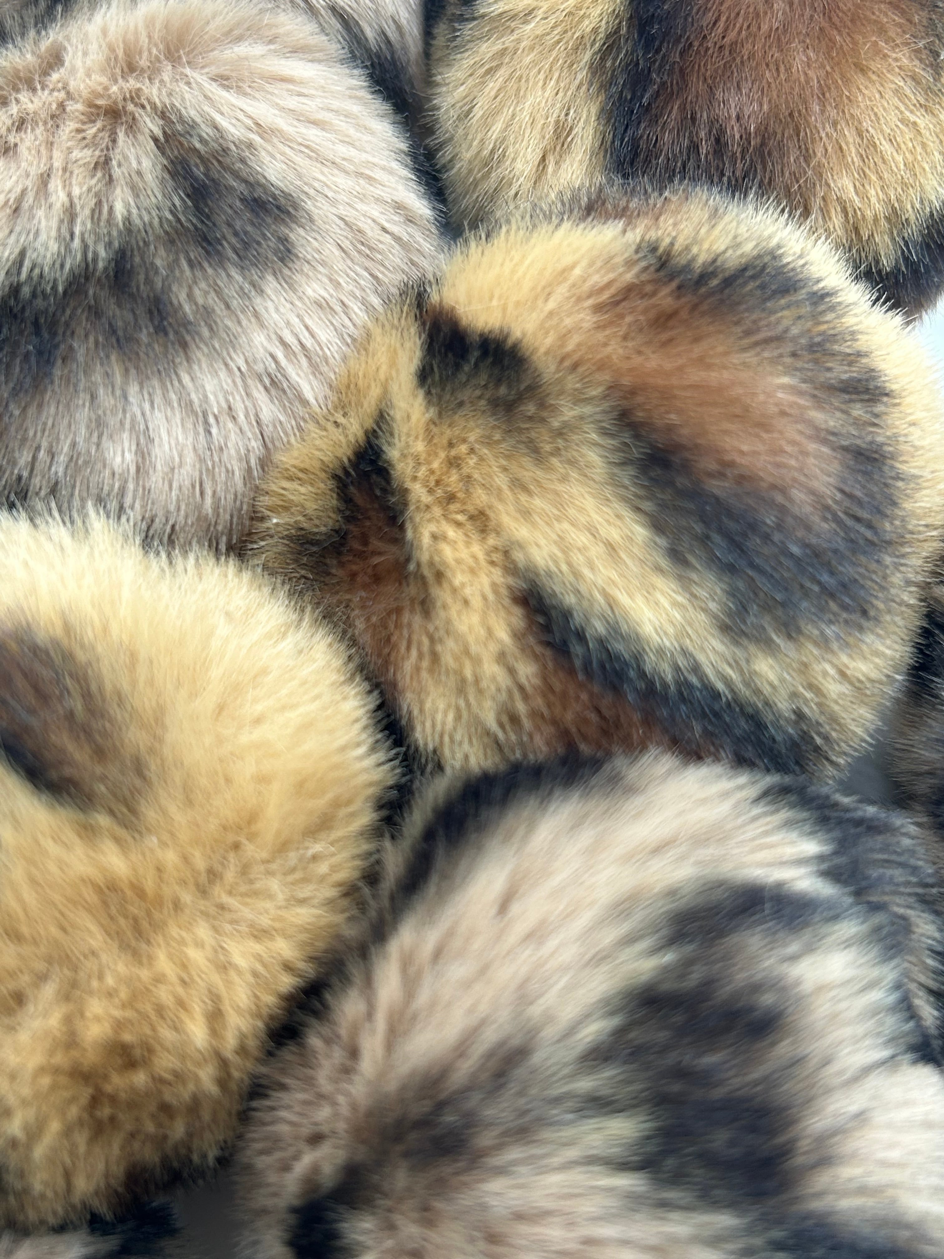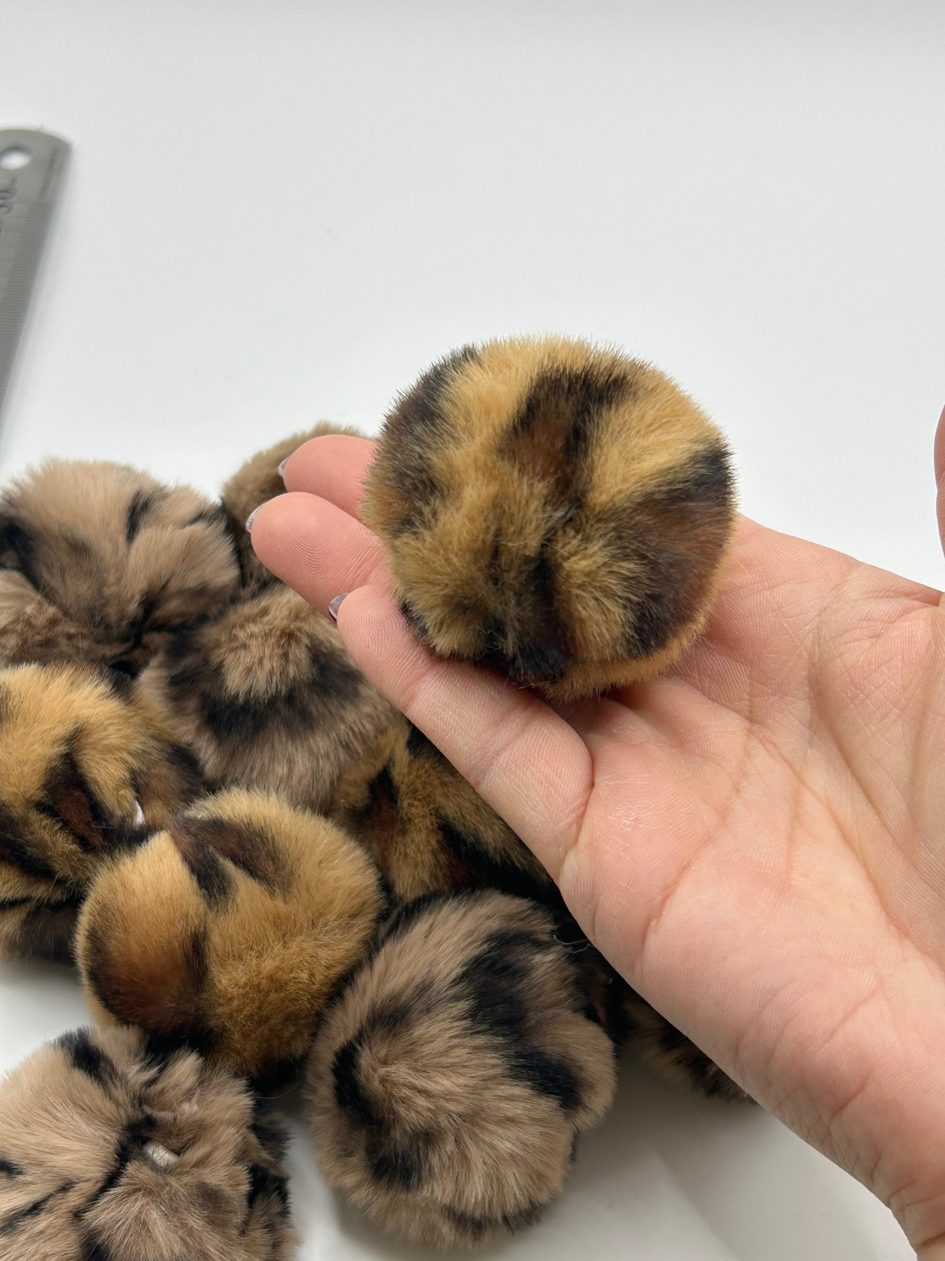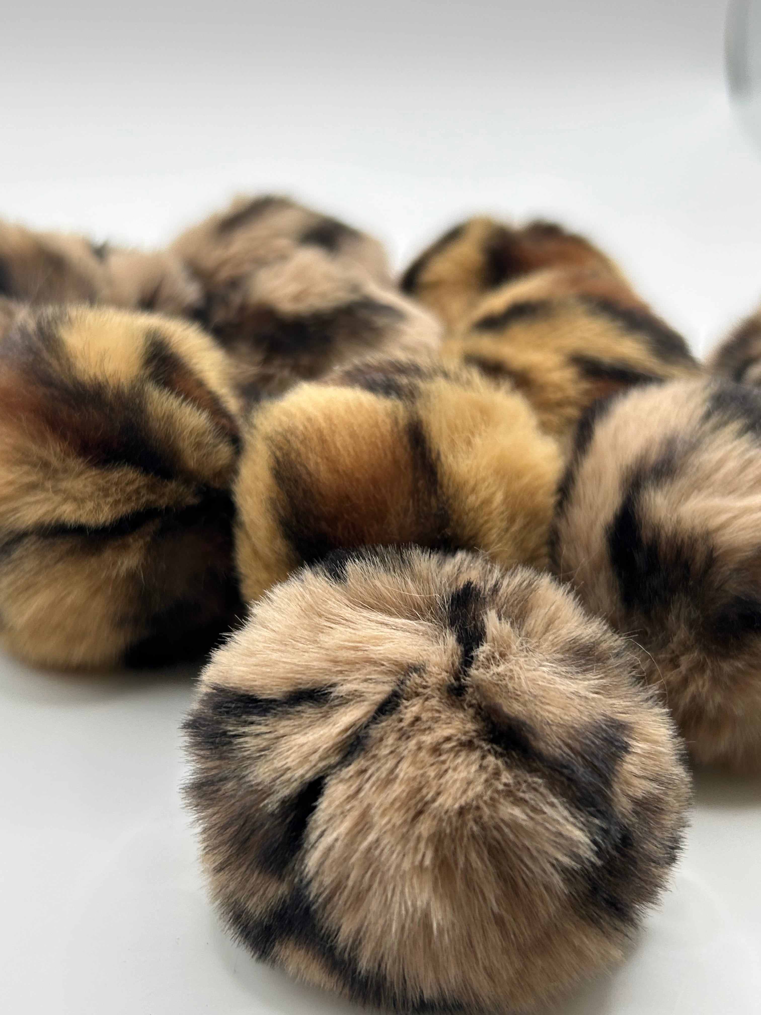 D16-3ヒョウ柄フェイクファーポンポン10個入り(ゴム入り/リユース)