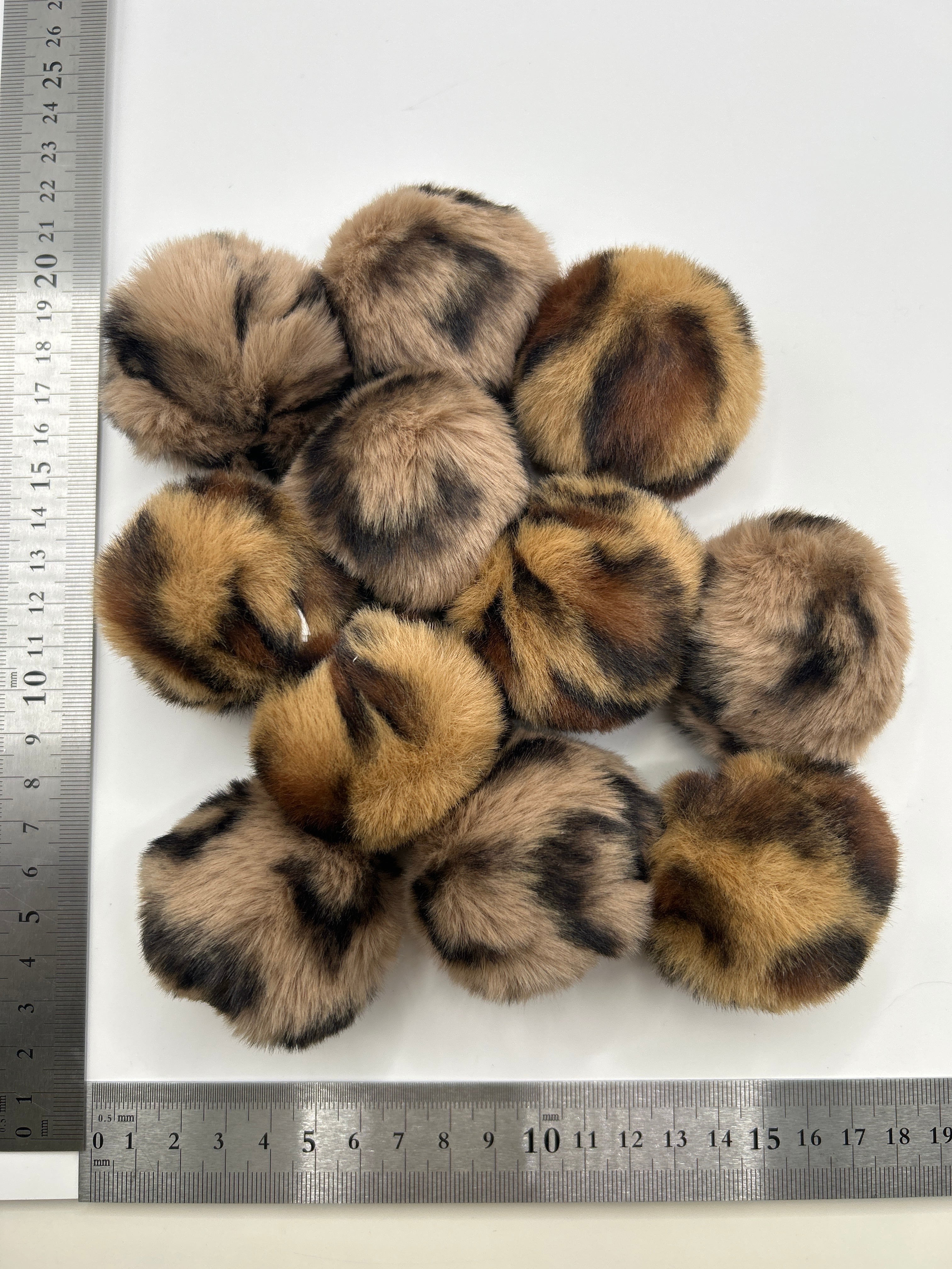 ヒョウ柄プリントのフェイクファーポンポンです。