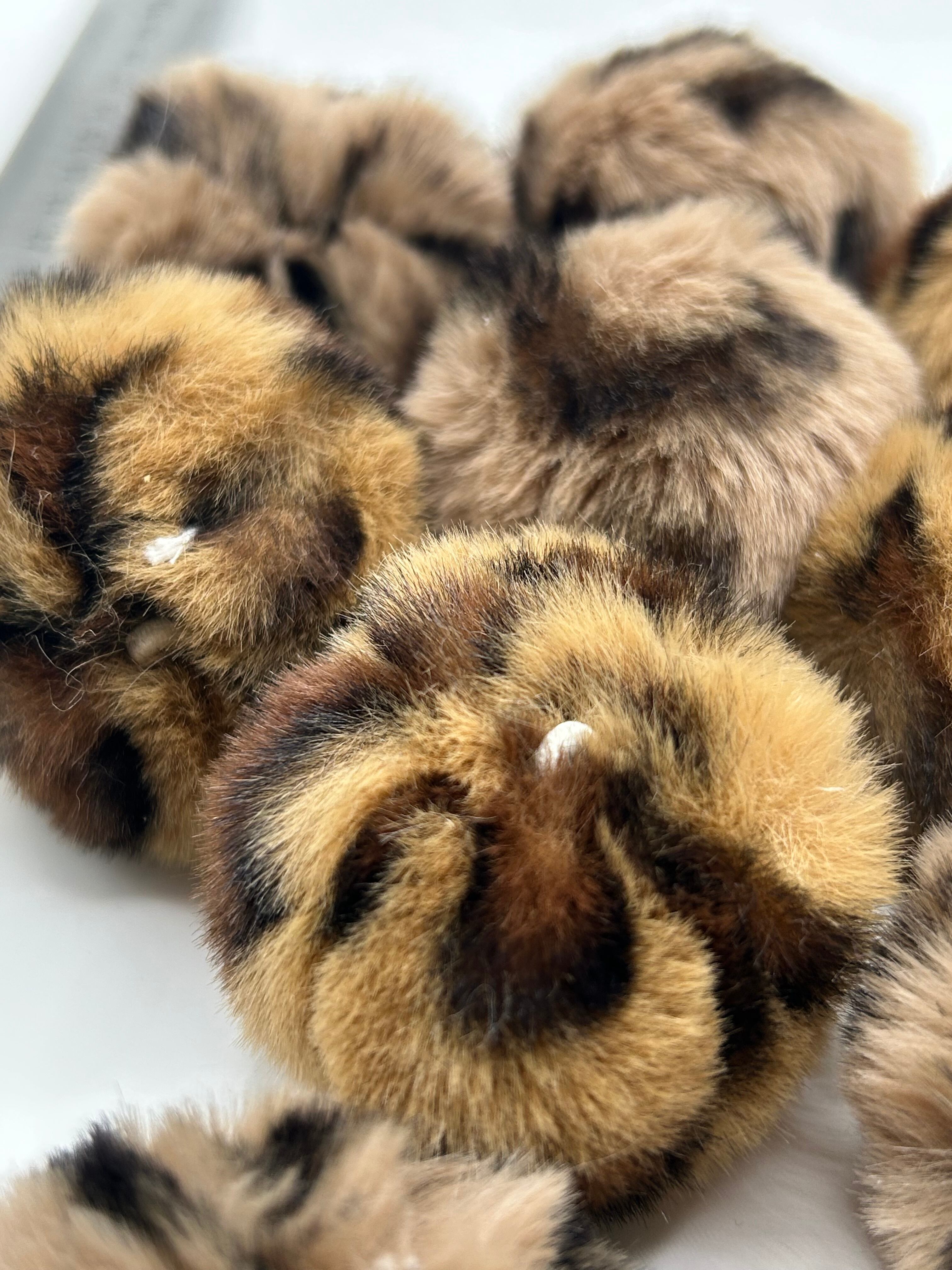 D16-3ヒョウ柄フェイクファーポンポン(ゴム入り/リユース)10個入り