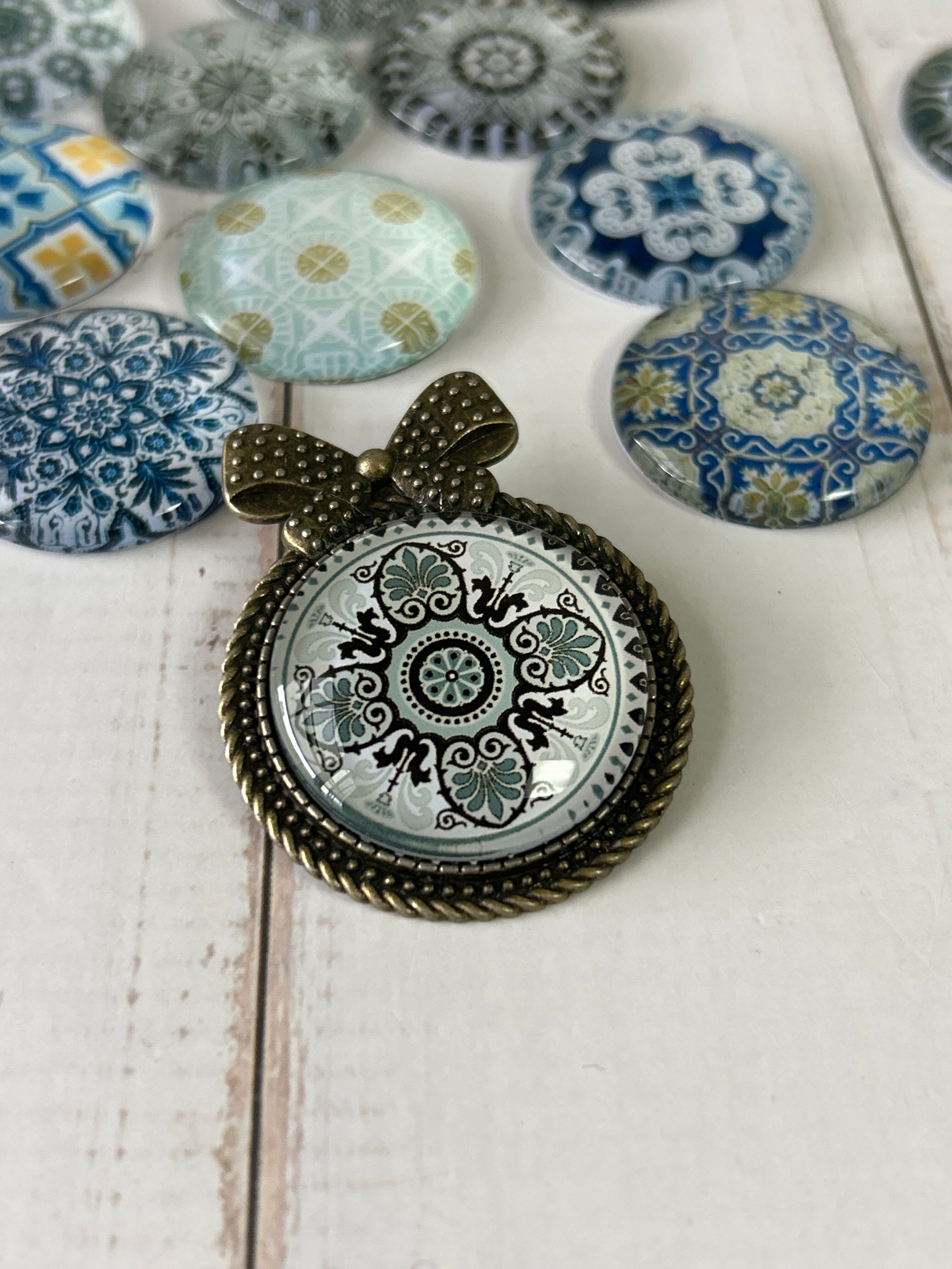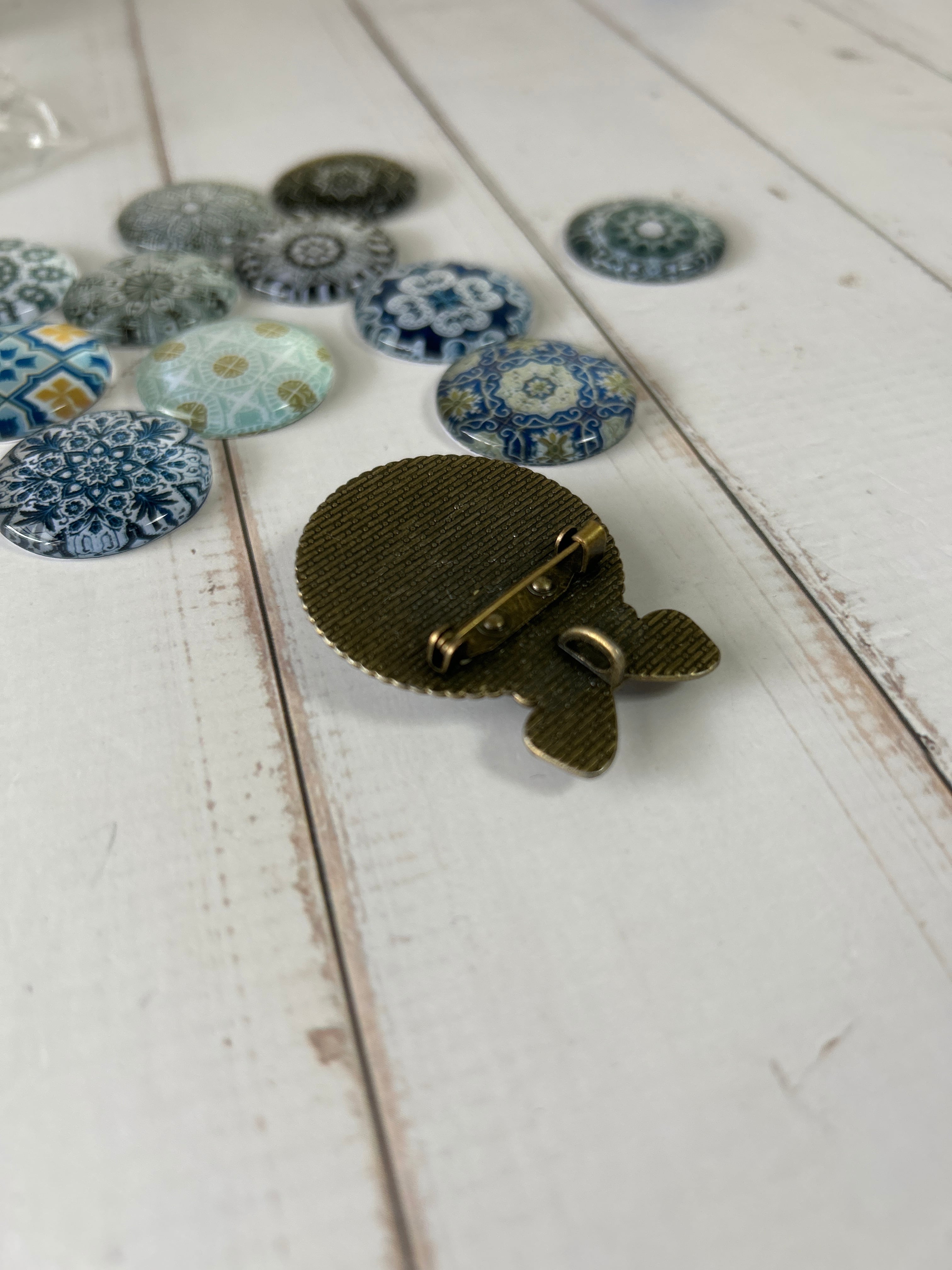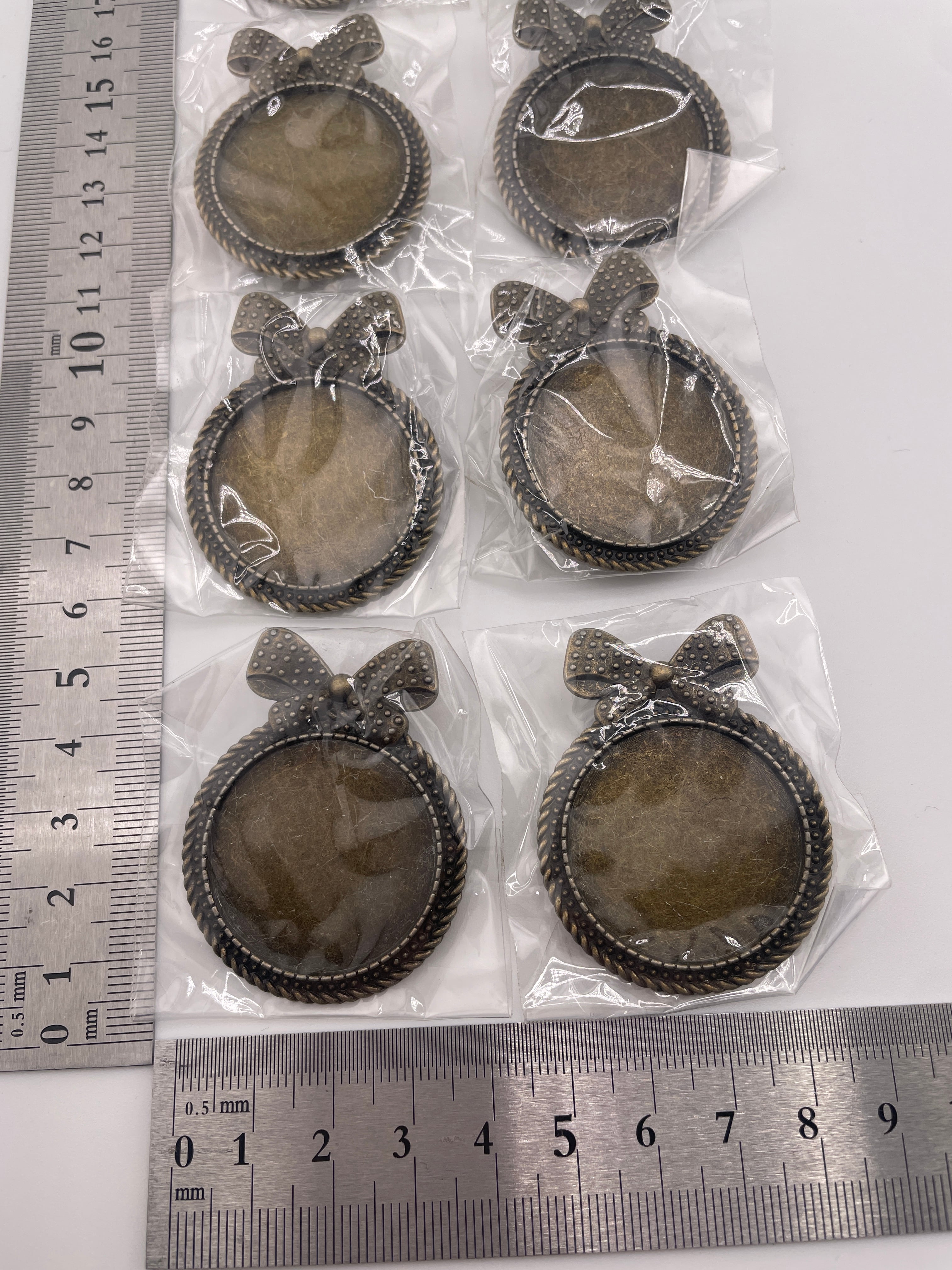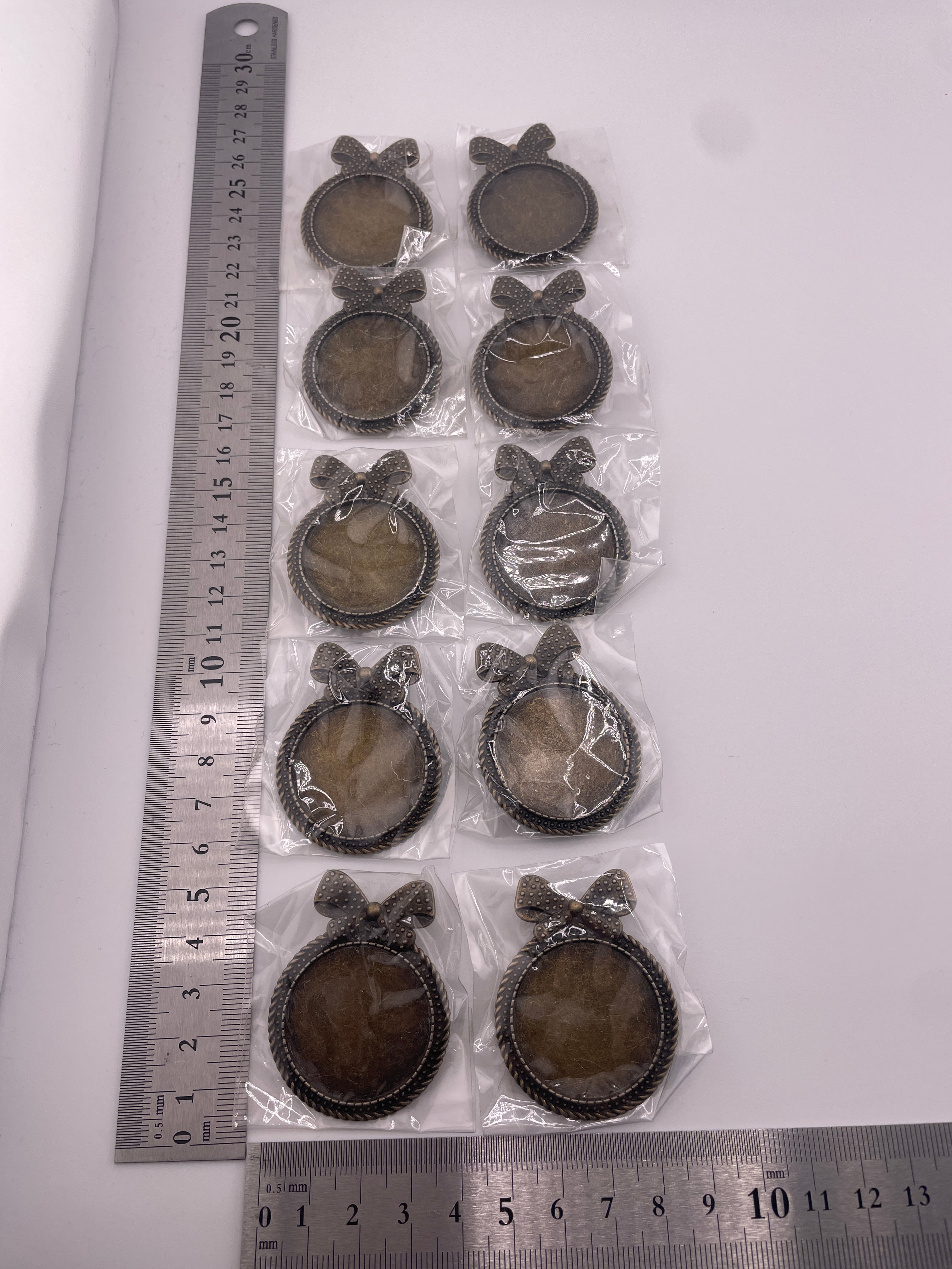 Y13-7 ブローチピン付きミール皿リボン+ガラスカボション12個入り