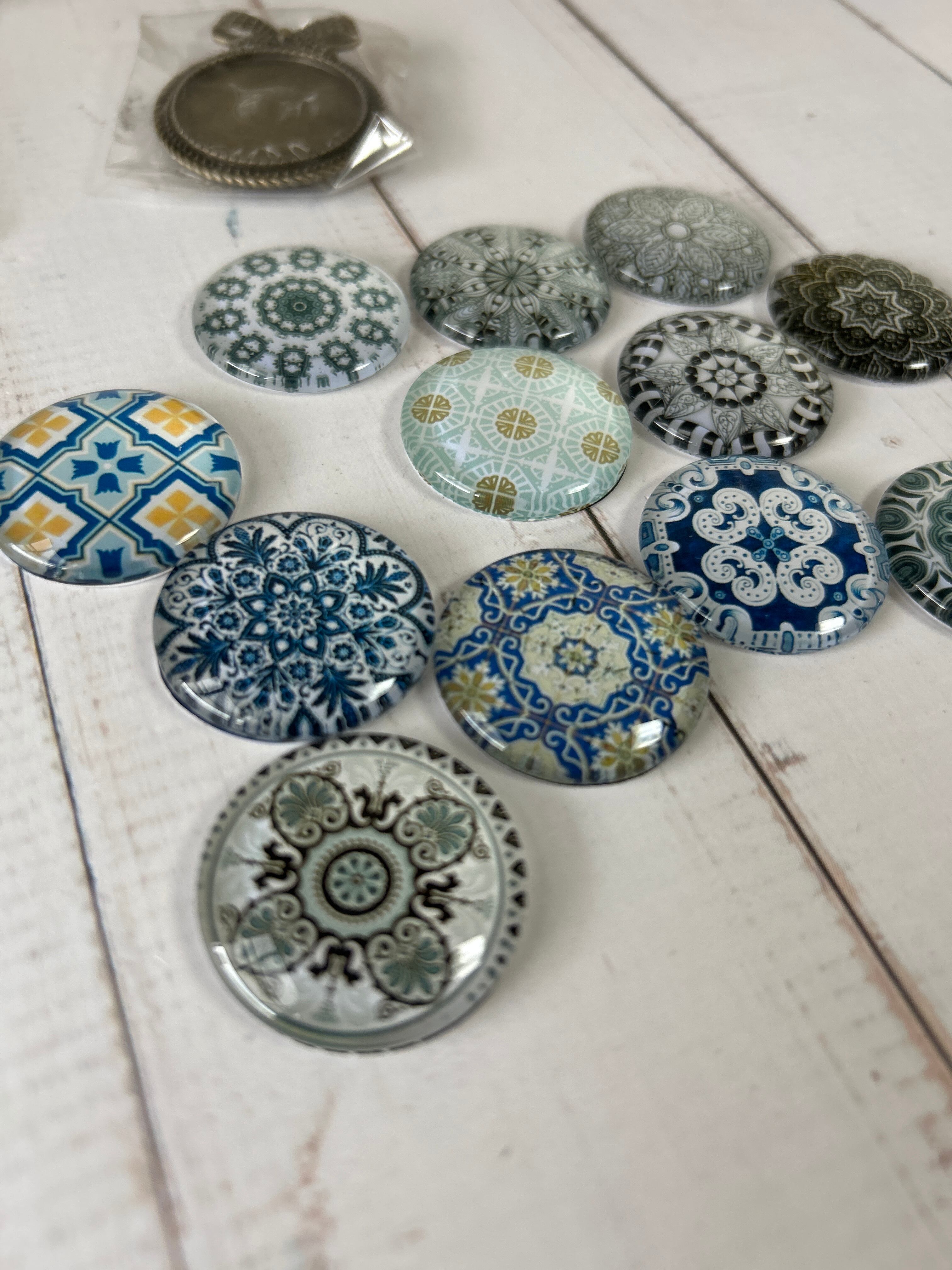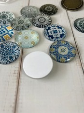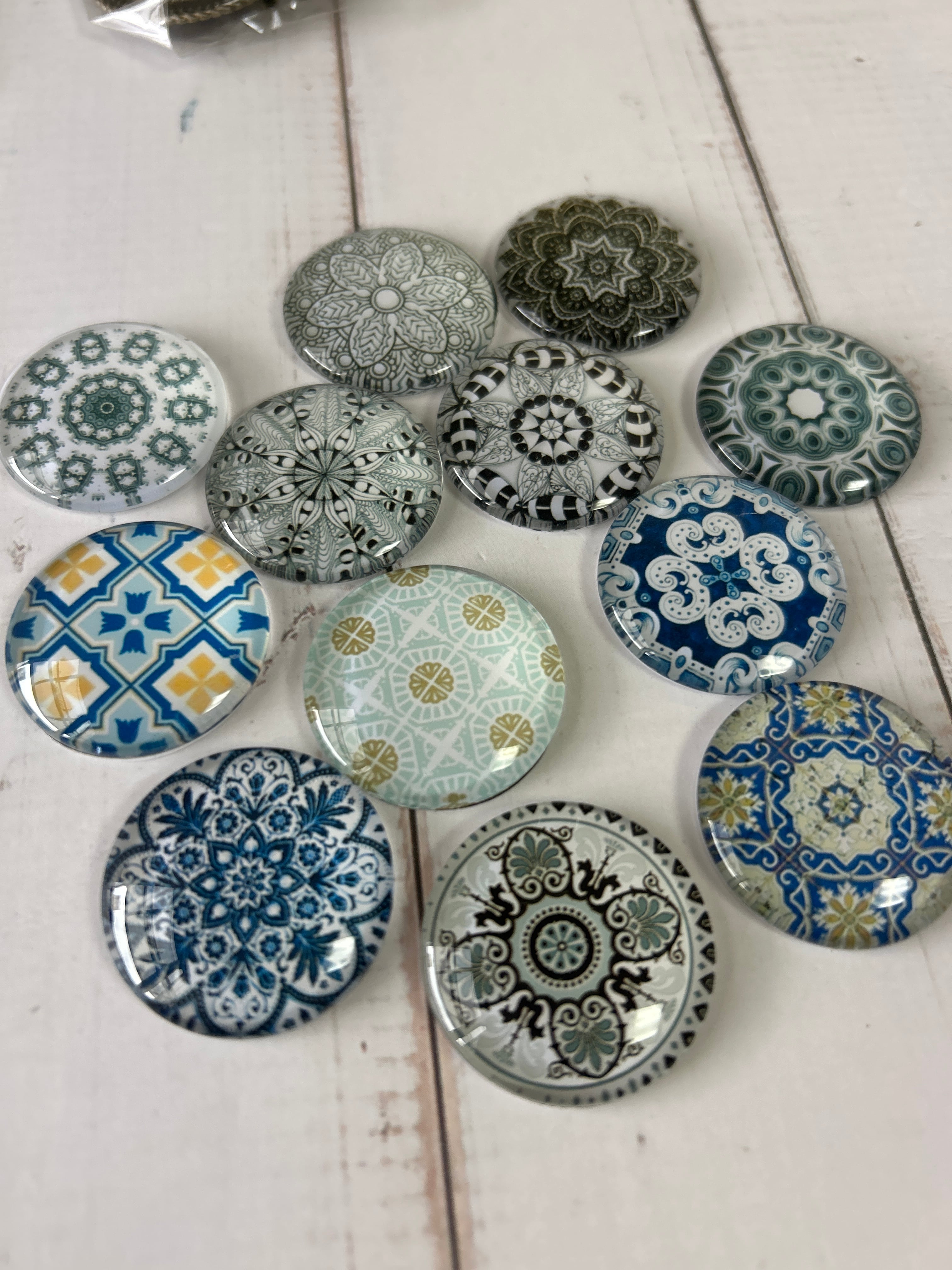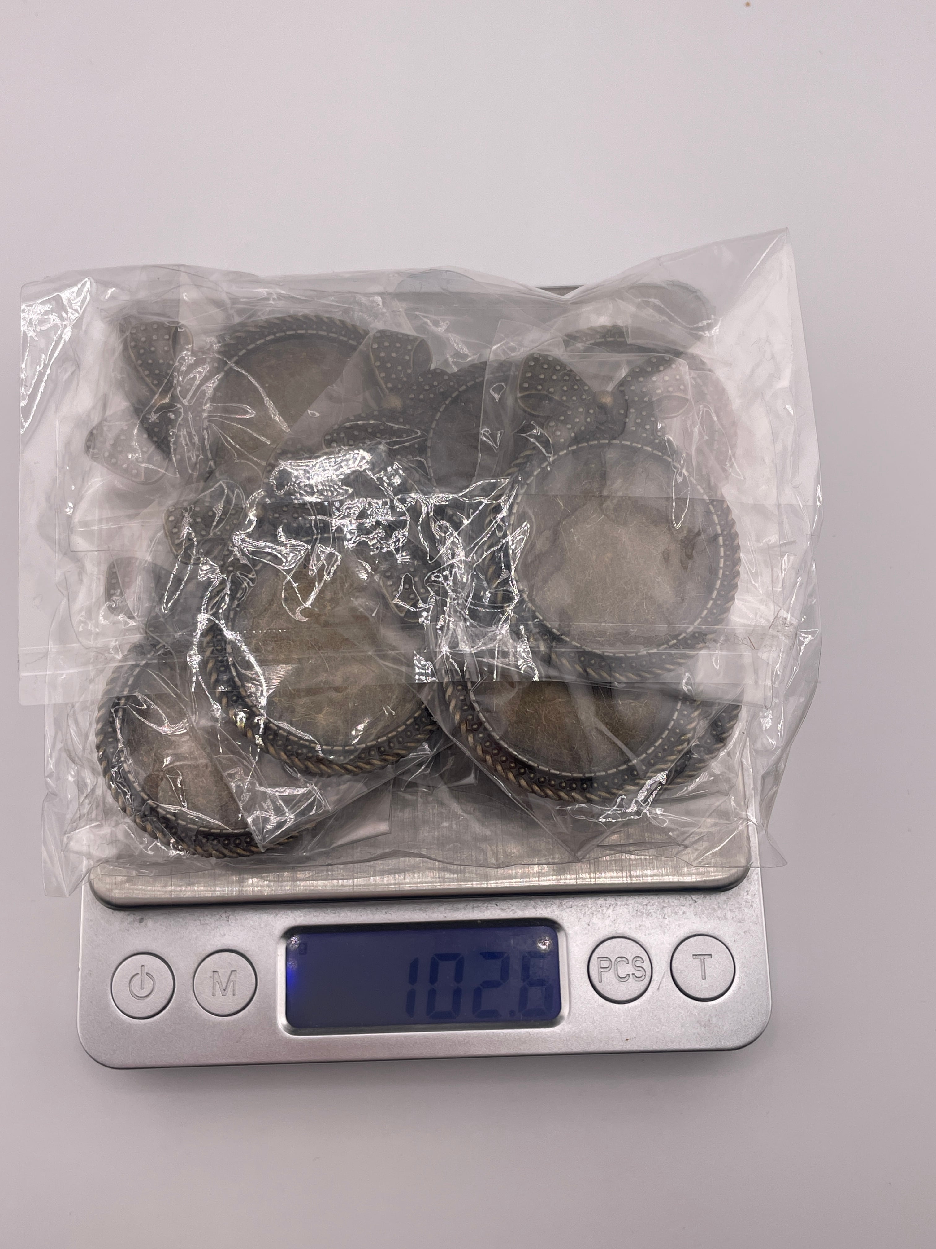 Y13-7 ブローチピン付きミール皿リボン+ガラスカボション12個入り