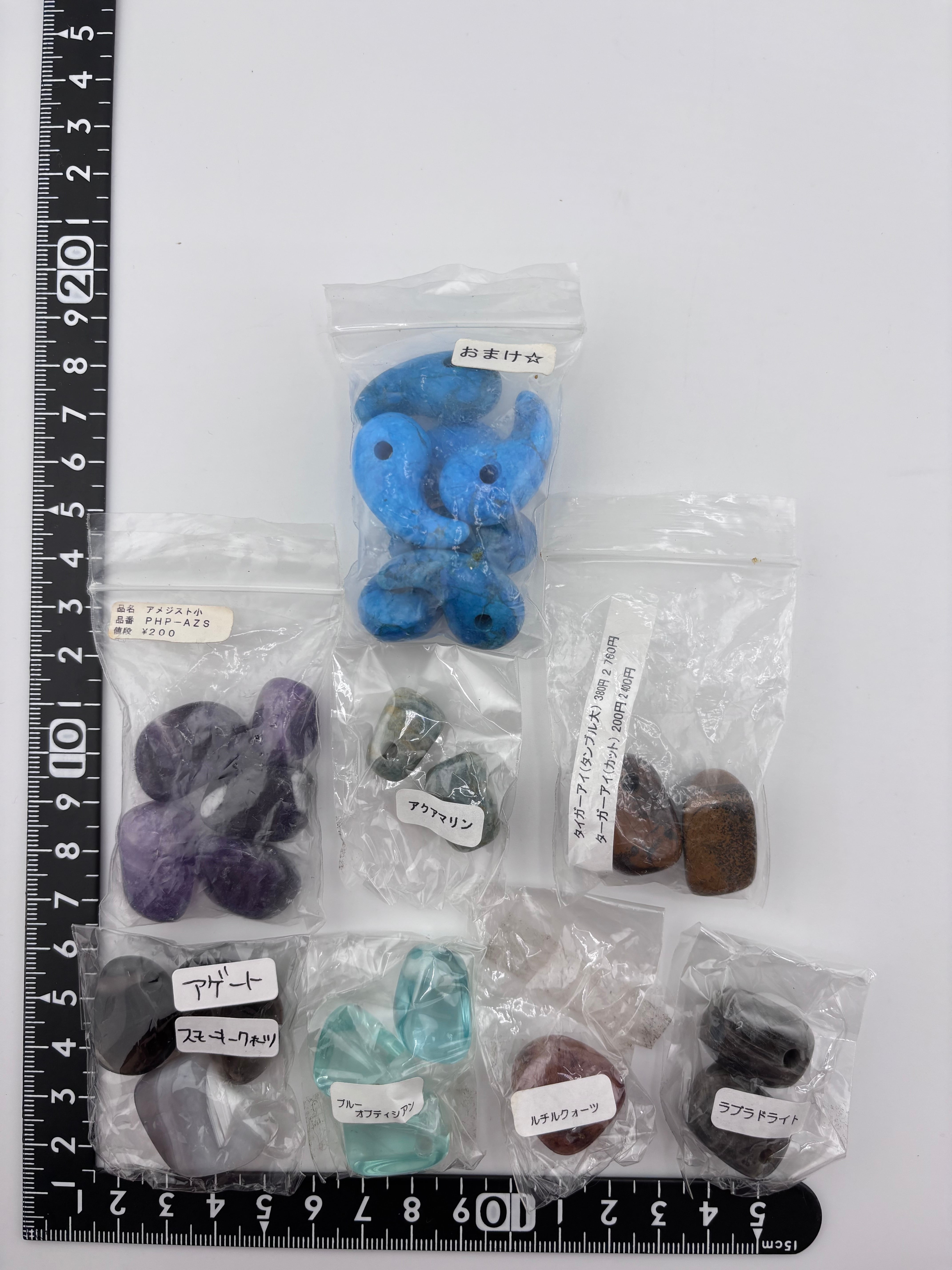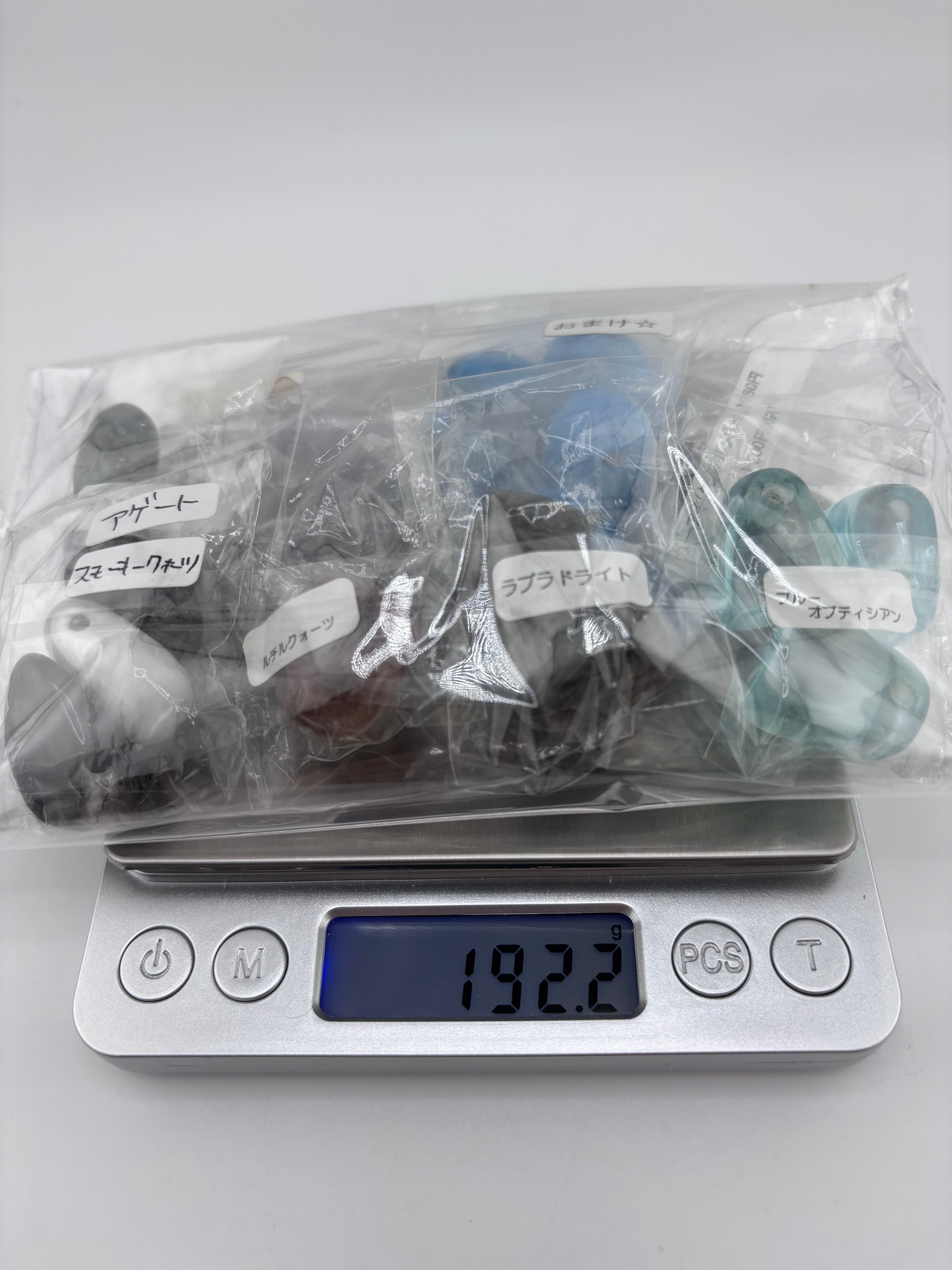 天然石タンブル穴あり アゲート・スモーキークォーツ・ブルーオブディシアン・ルチルクォーツ・ラブラドライト・アメジスト・アクアマリン・タイガーアイ【リユース)1連 192.2g