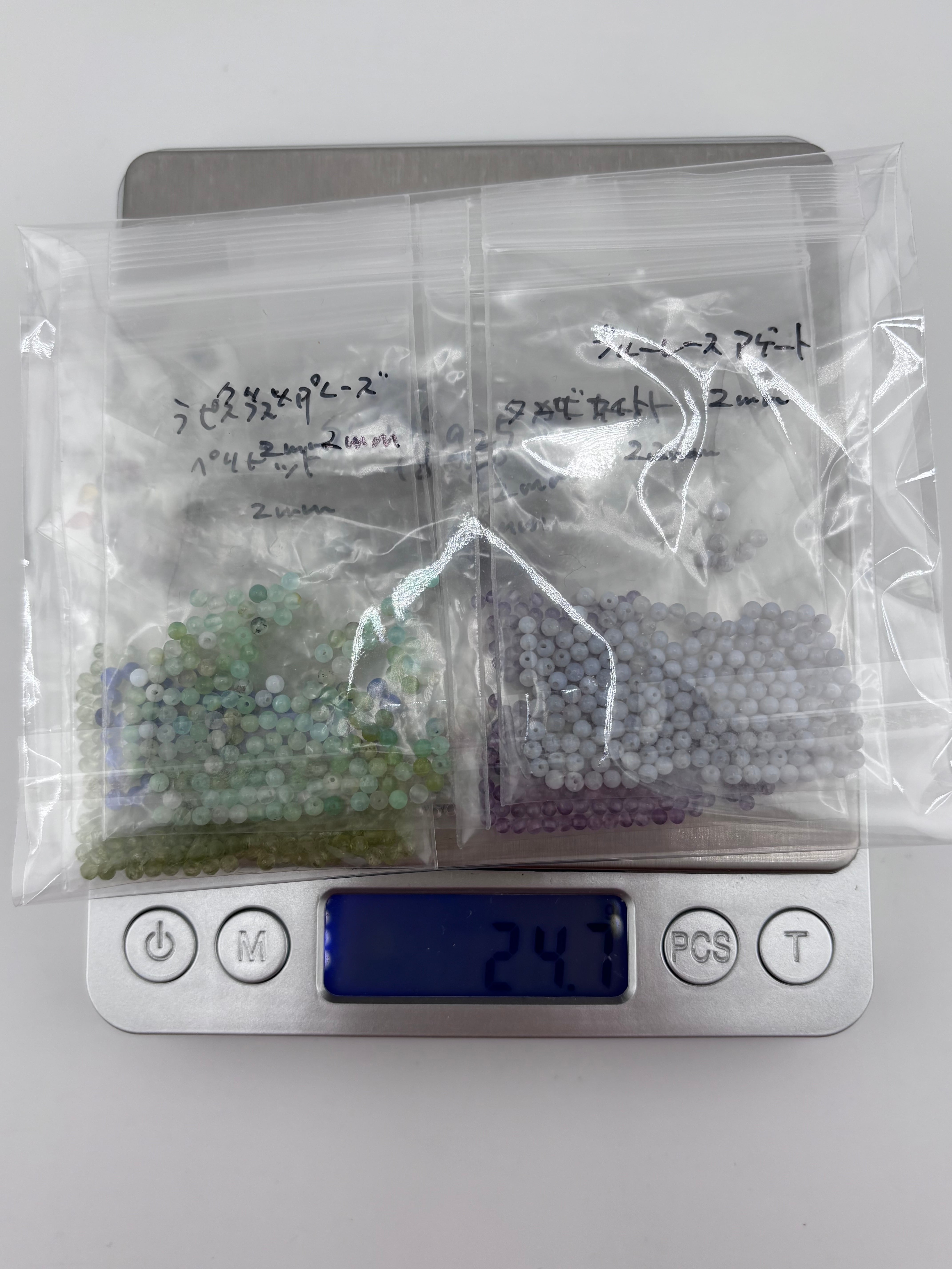 W8-55 クリソプレーズ、ペリドット、ラピスラズリ、ブルーレースアゲート、タンザナイト、ガーネットなど 2mm【リユース】1連 24.7g