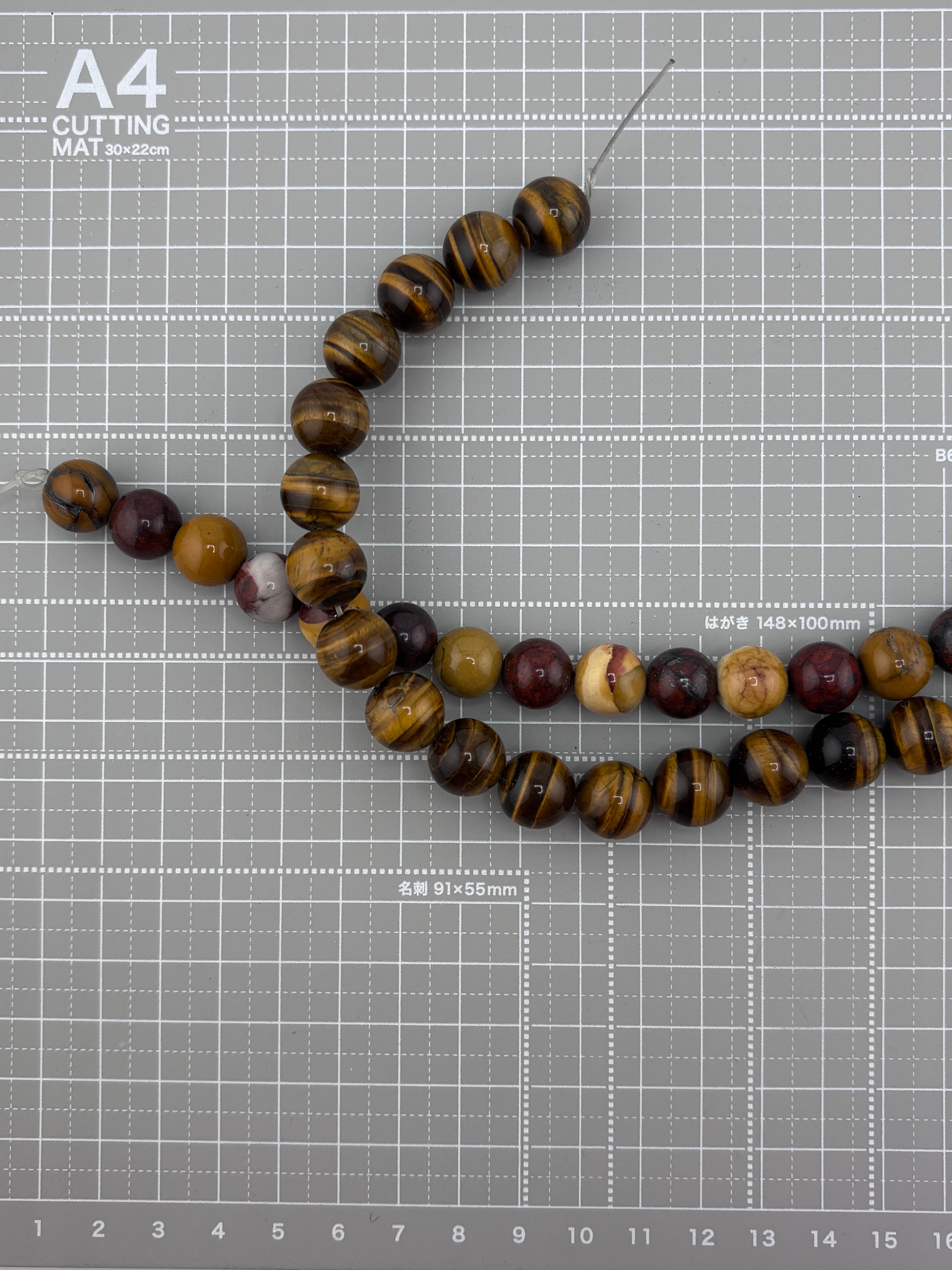 W8-60 タイガーアイ、ジャスパー 11.8mm〜12.8mm【リユース】1連 178.2g