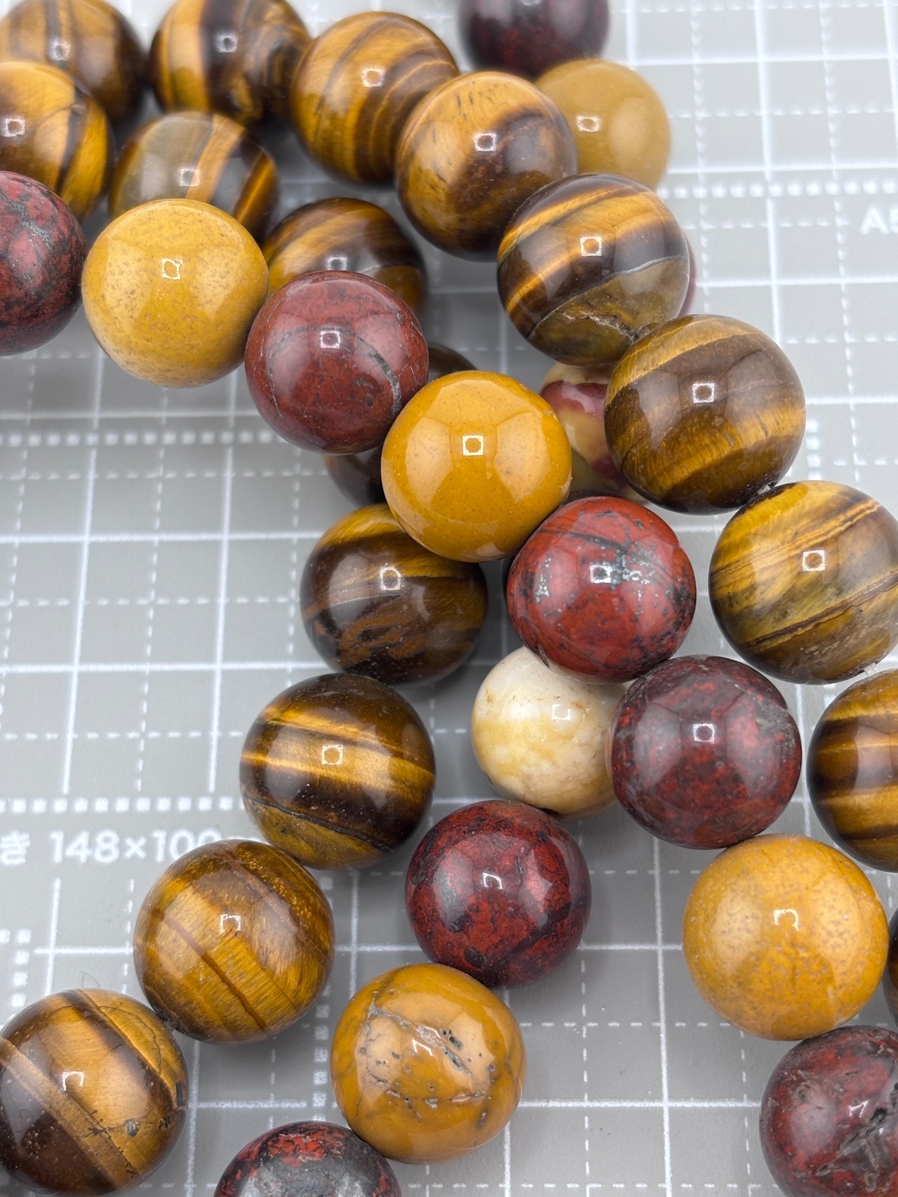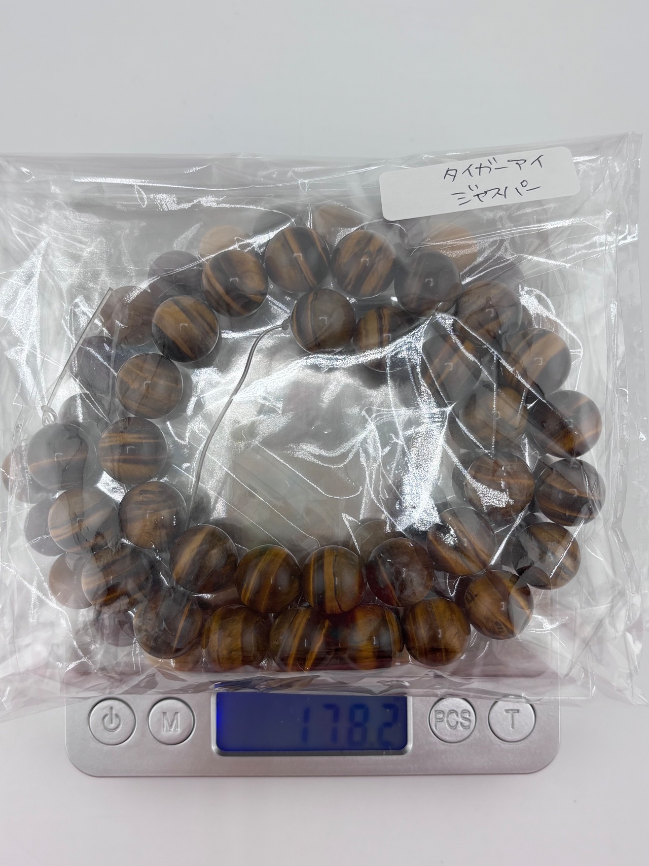 60 タイガーアイ、ジャスパー 11.8mm〜12.8mm【リユース】1連 178.2g