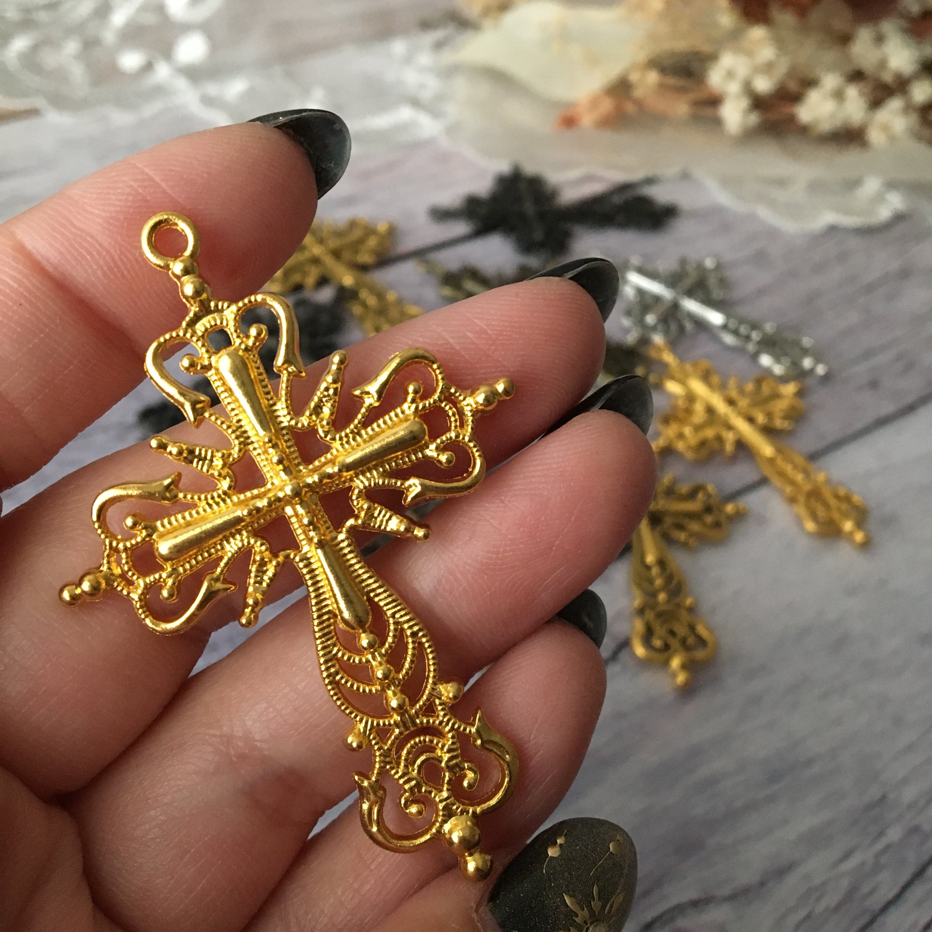631 アンティーク風クロスチャーム 2個入