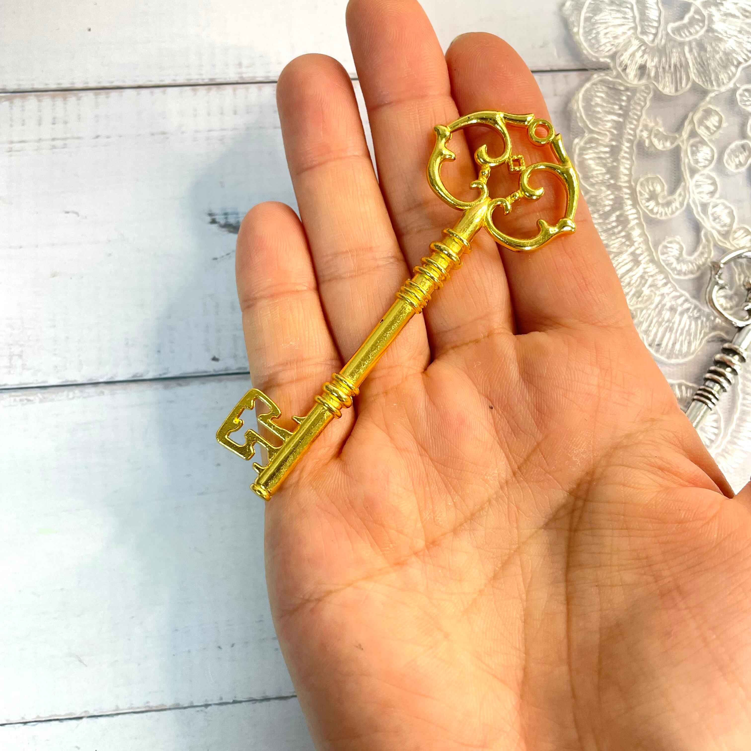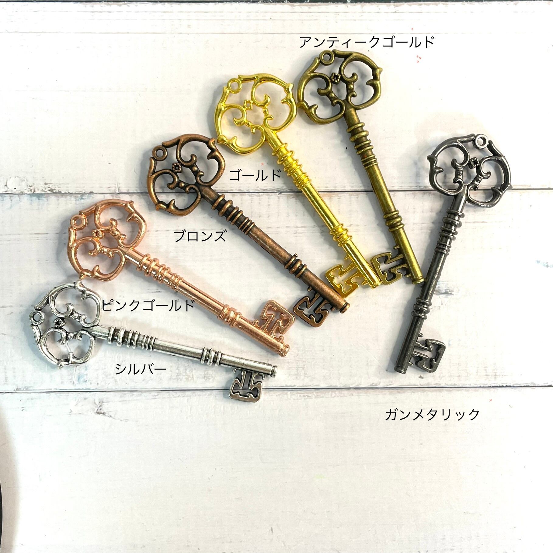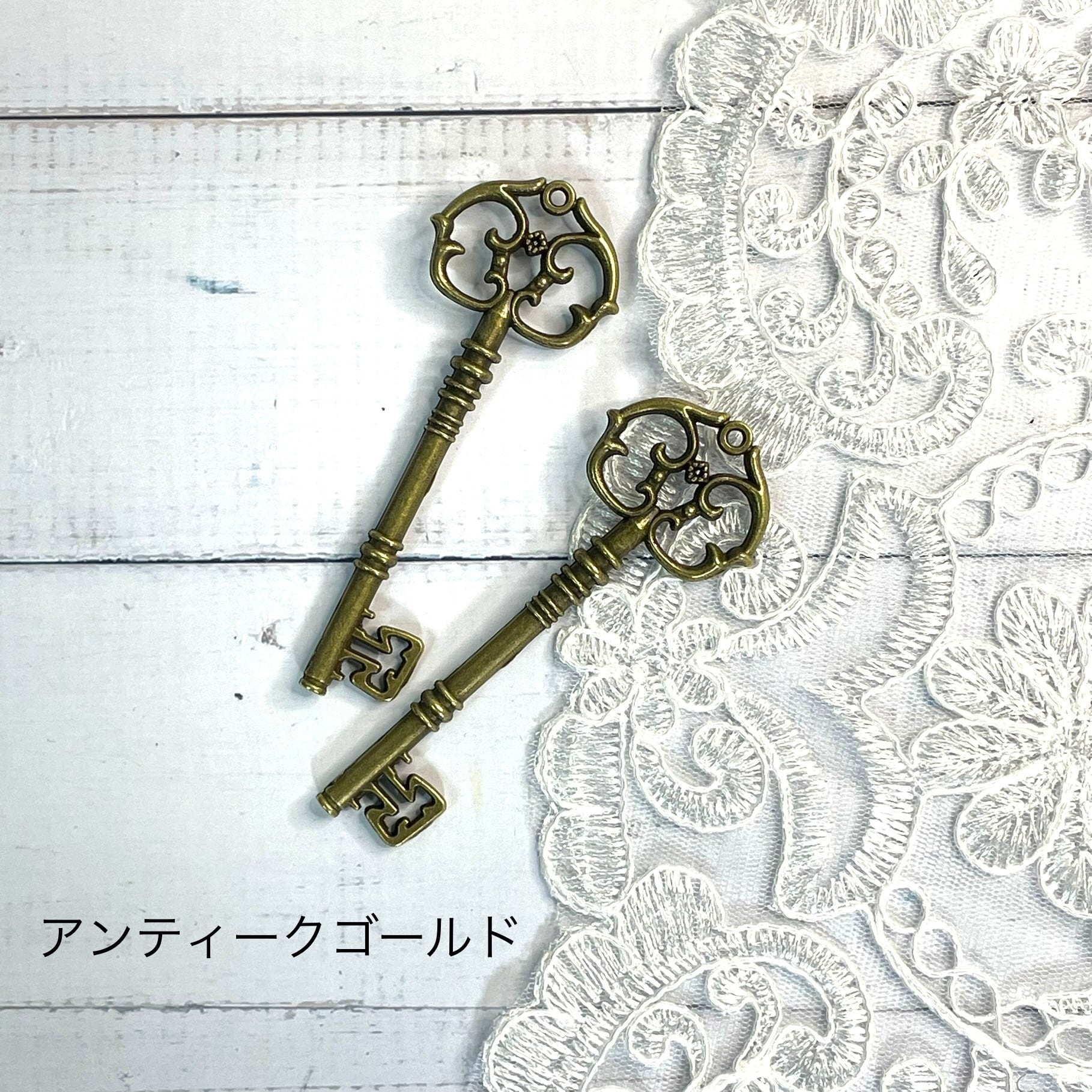 ヴィンテージ調大きな鍵のチャームは、どんなアクセサリーにも合わせやすい一品です。アンティーク調のデザインが、おしゃれな雰囲気を演出します。手作りのジュエリーやバッグ、キーホルダーなどに取り付けて、個性的なアイテムを作り上げましょう。ヴィンテージ風の鍵のデザインが、どこか懐かしい雰囲気を作り出し、味わい深いアクセサリーを楽しむことができます。一本のチャームだけでも存在感がありますが、複数個を組み合わせて使うこともおすすめです。さまざまなアクセントとして活かせる大きな鍵のチャームを、ぜひお楽しみください。