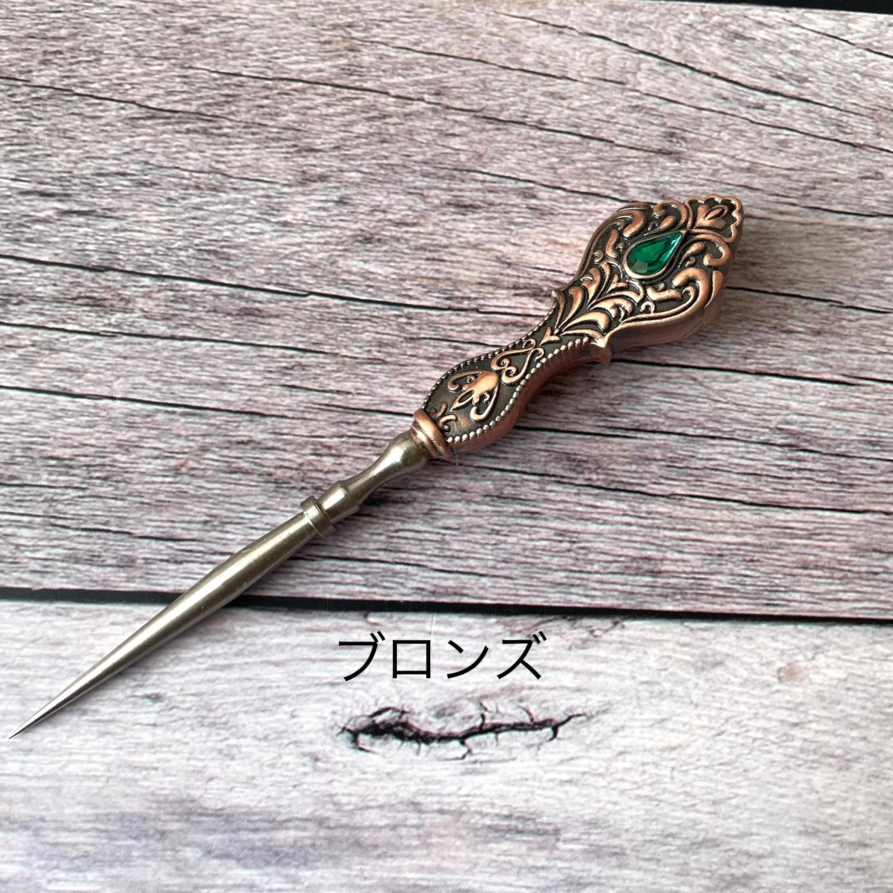 ヴィンテージなカラーにビジューが埋め込まれていて高級感があります。ずっしりと重みを感じ