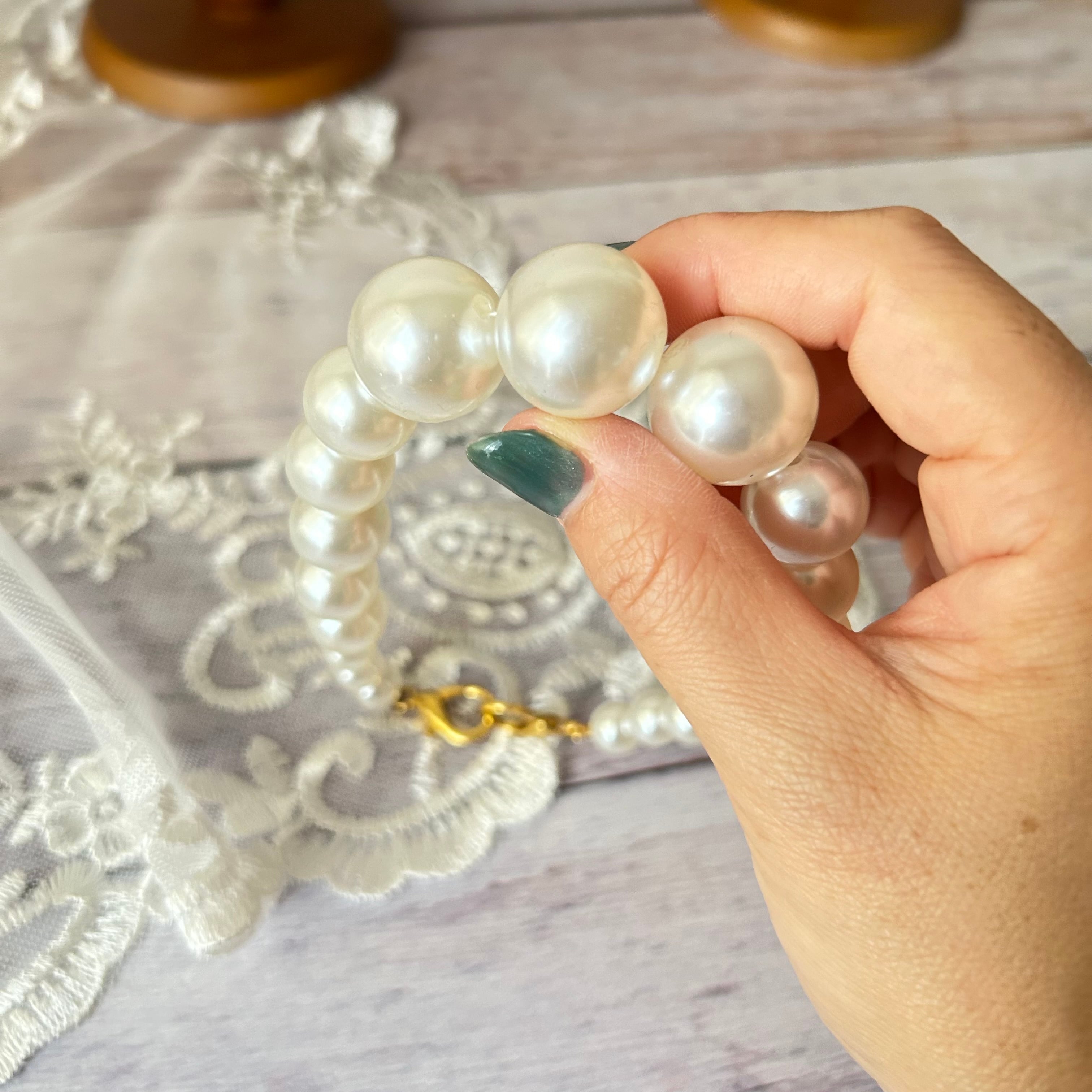 大小様々なパールがついた
