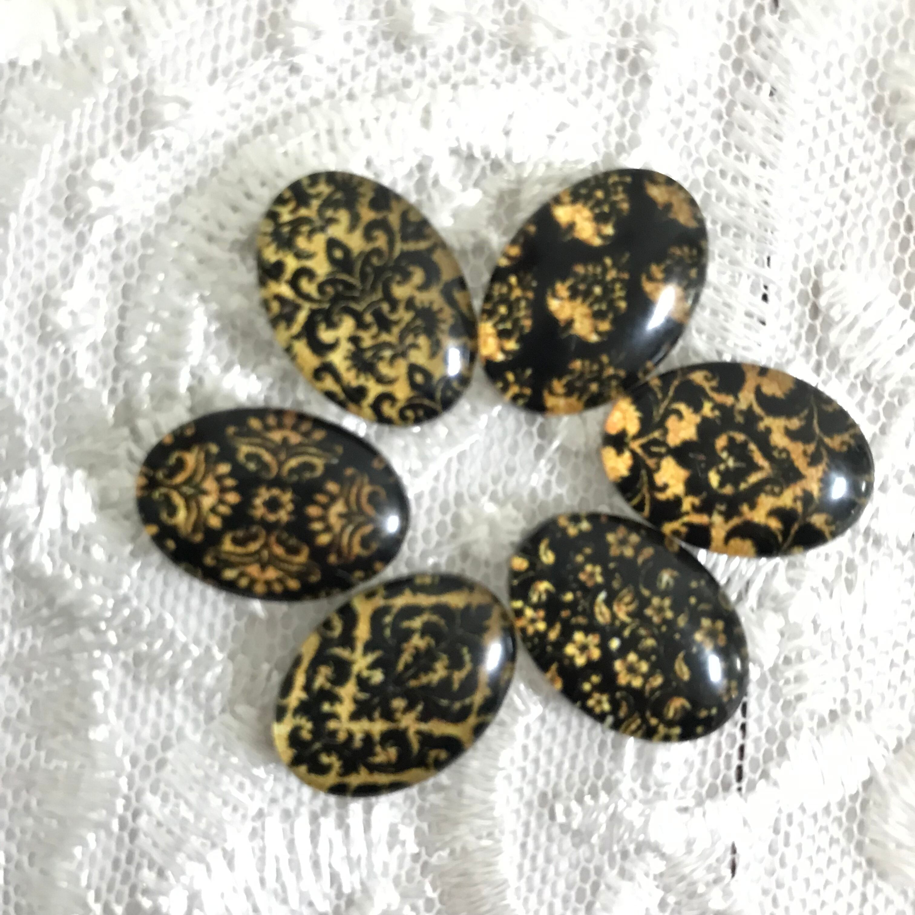 ダマスク柄ガラスカボション 小サイズ