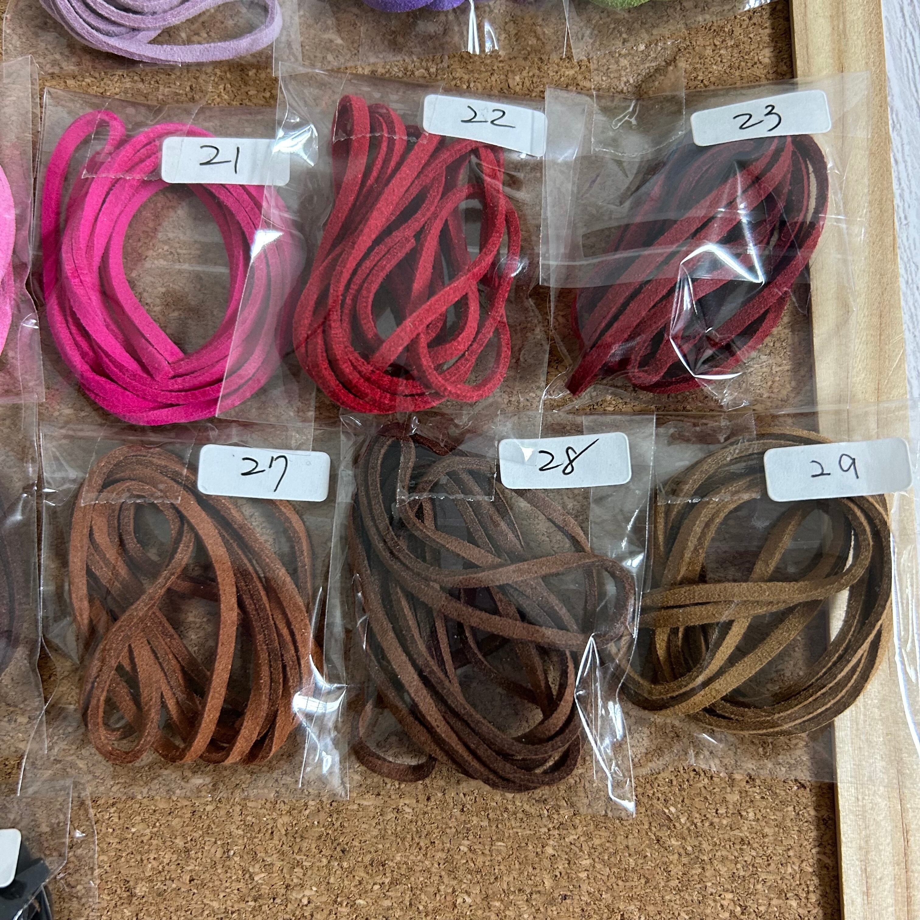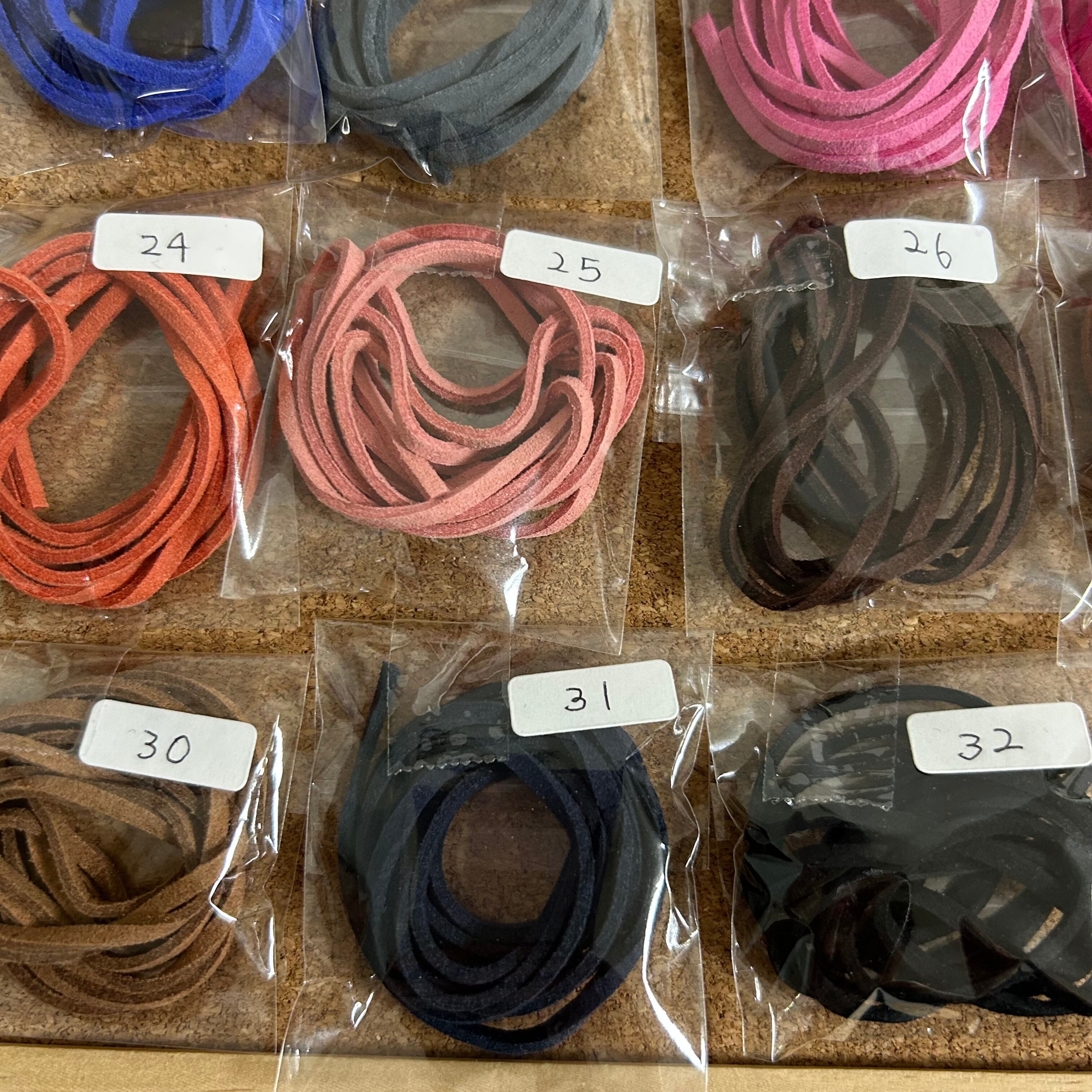 柔らかな質感で肌触りが良くネックレスやブレスレット、タッセルなどにピッタリのスウェード調コード。
